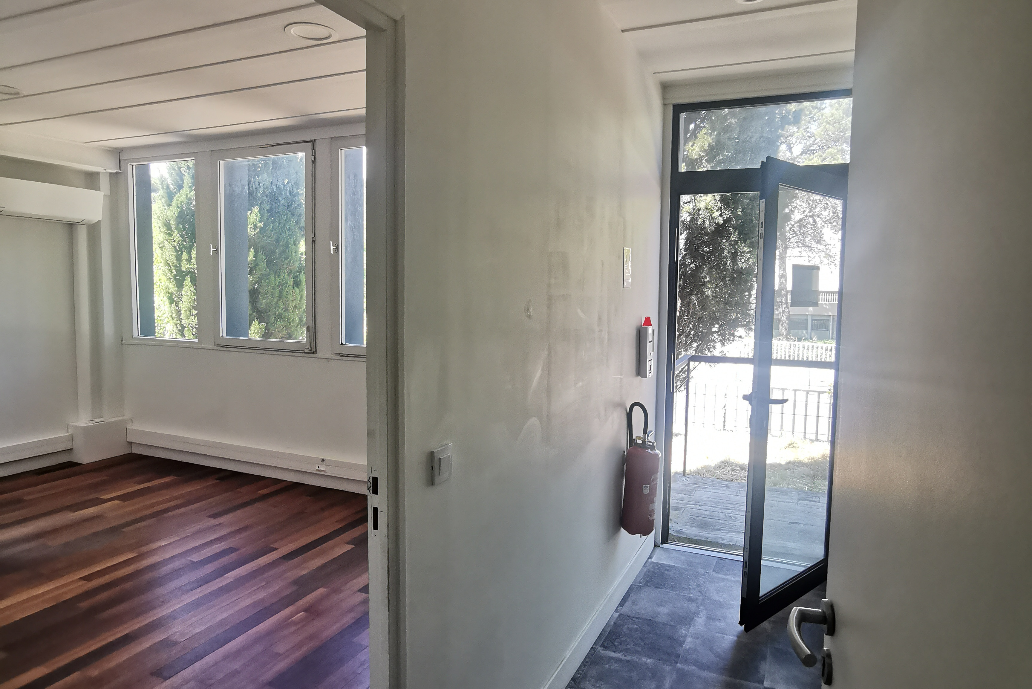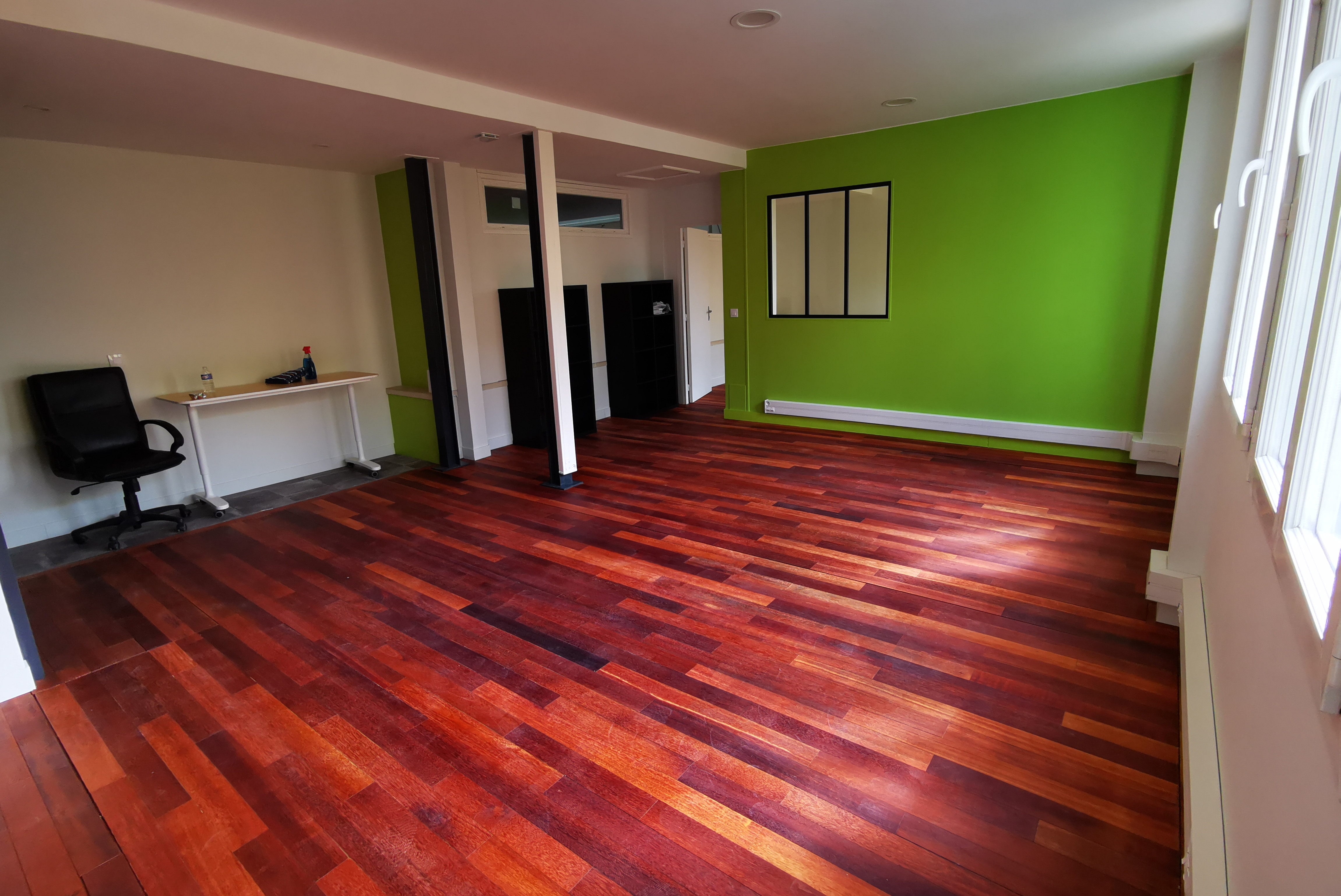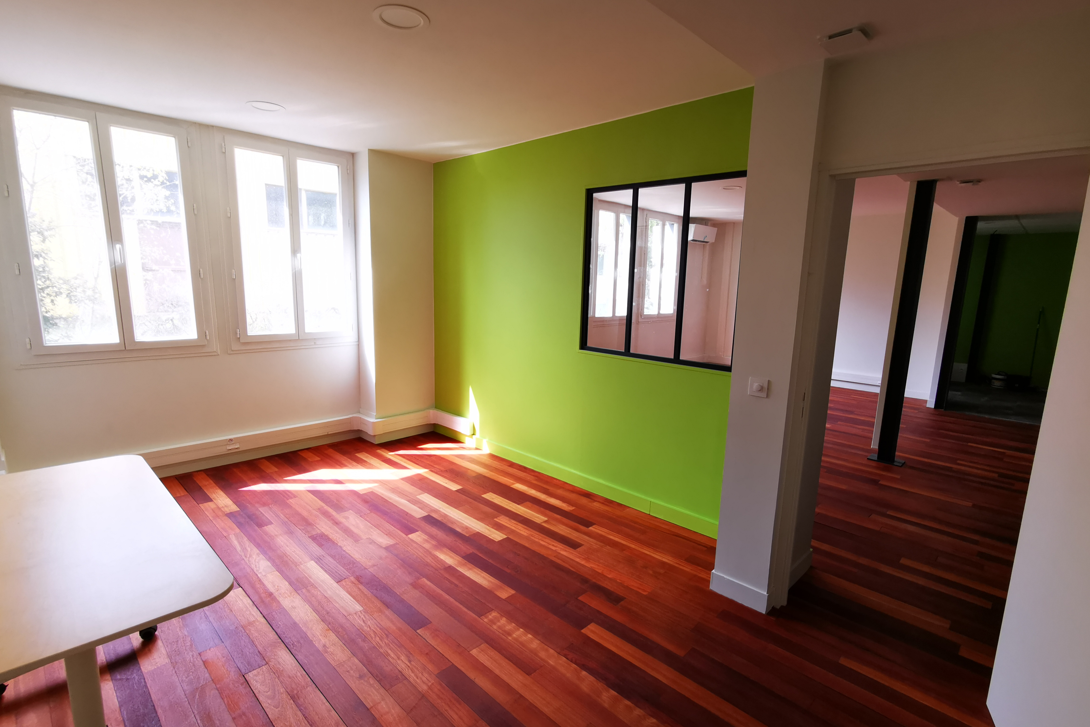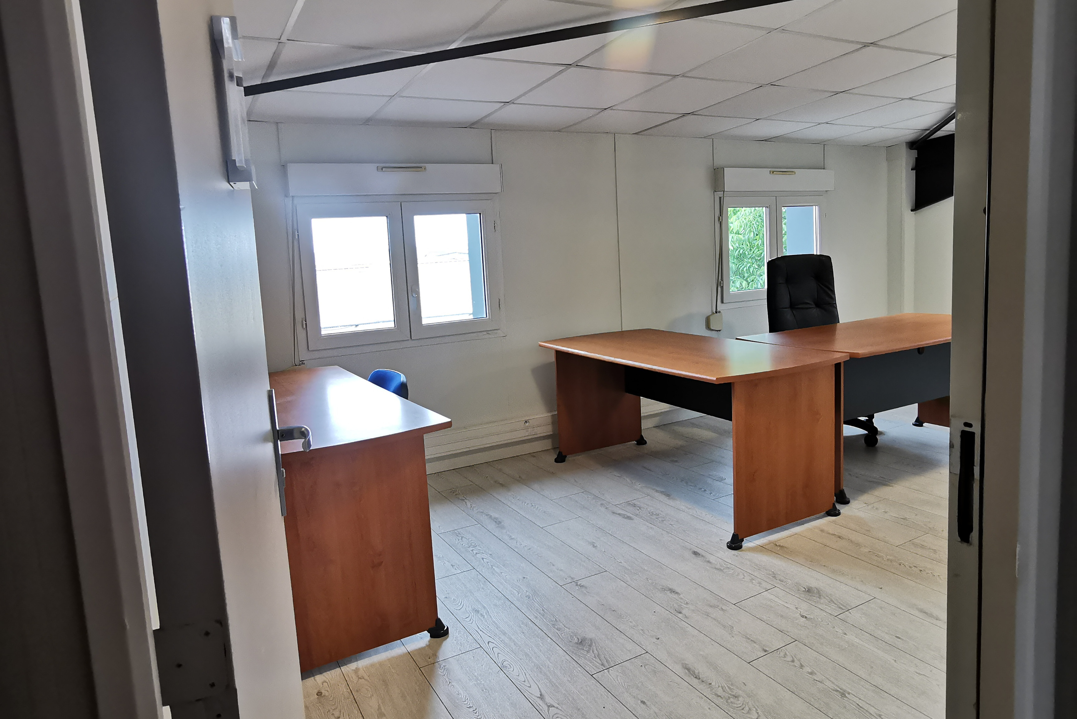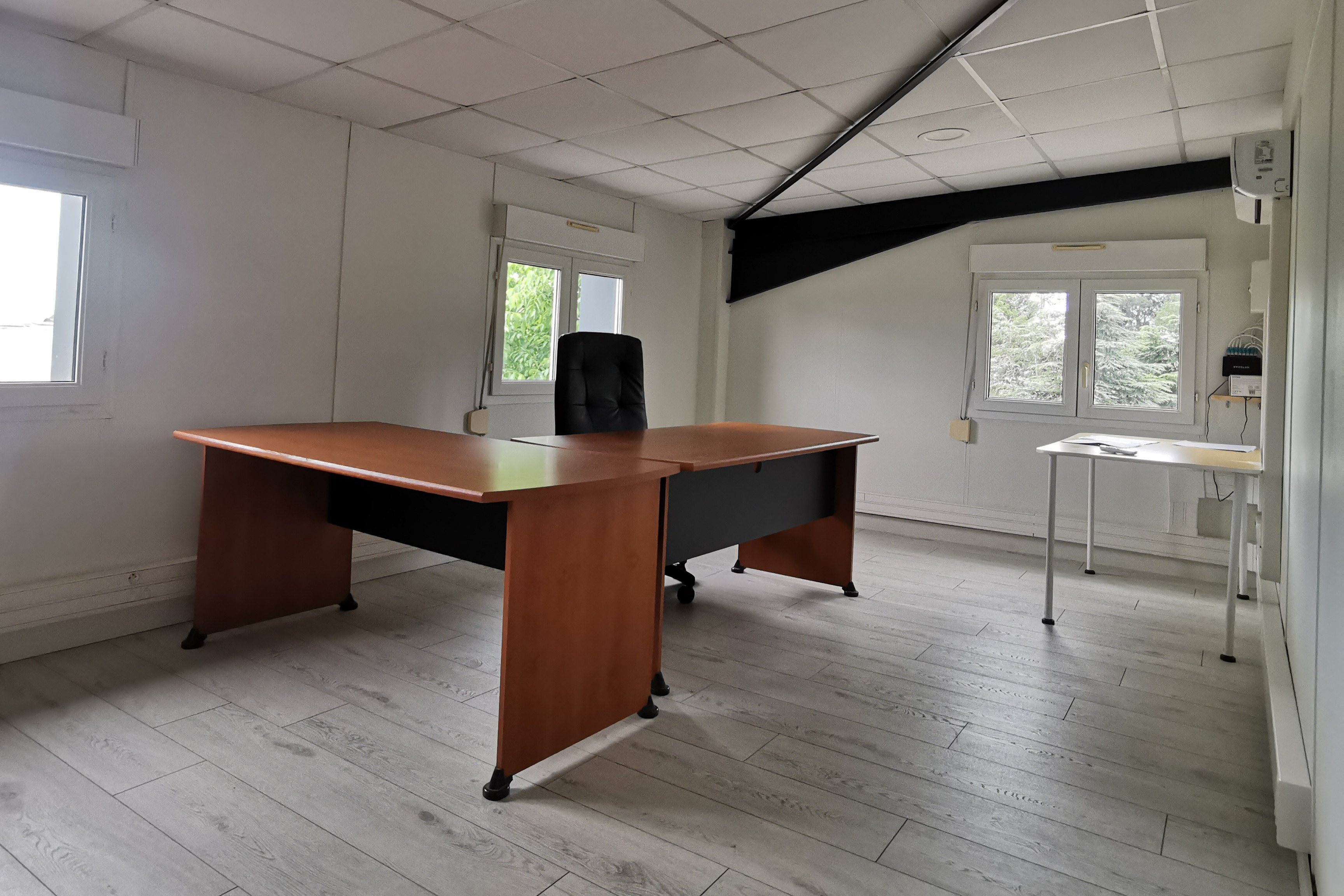 Ensemble avec entrée indépendante dans immeuble de bureaux (R+1), composé de 1 bureau fermé de 15m2, d'un openspace de 45m2, d'un coin cuisine et d'1 WC. Cablé et climatisé. Dans un bâtiment avec accès aux espaces communs : salle de réunion équipée (gratuite sur réservation), cuisine et espace de restauration, grand parking privé et 2 places privatives. Disponible au 1er septembre 2025