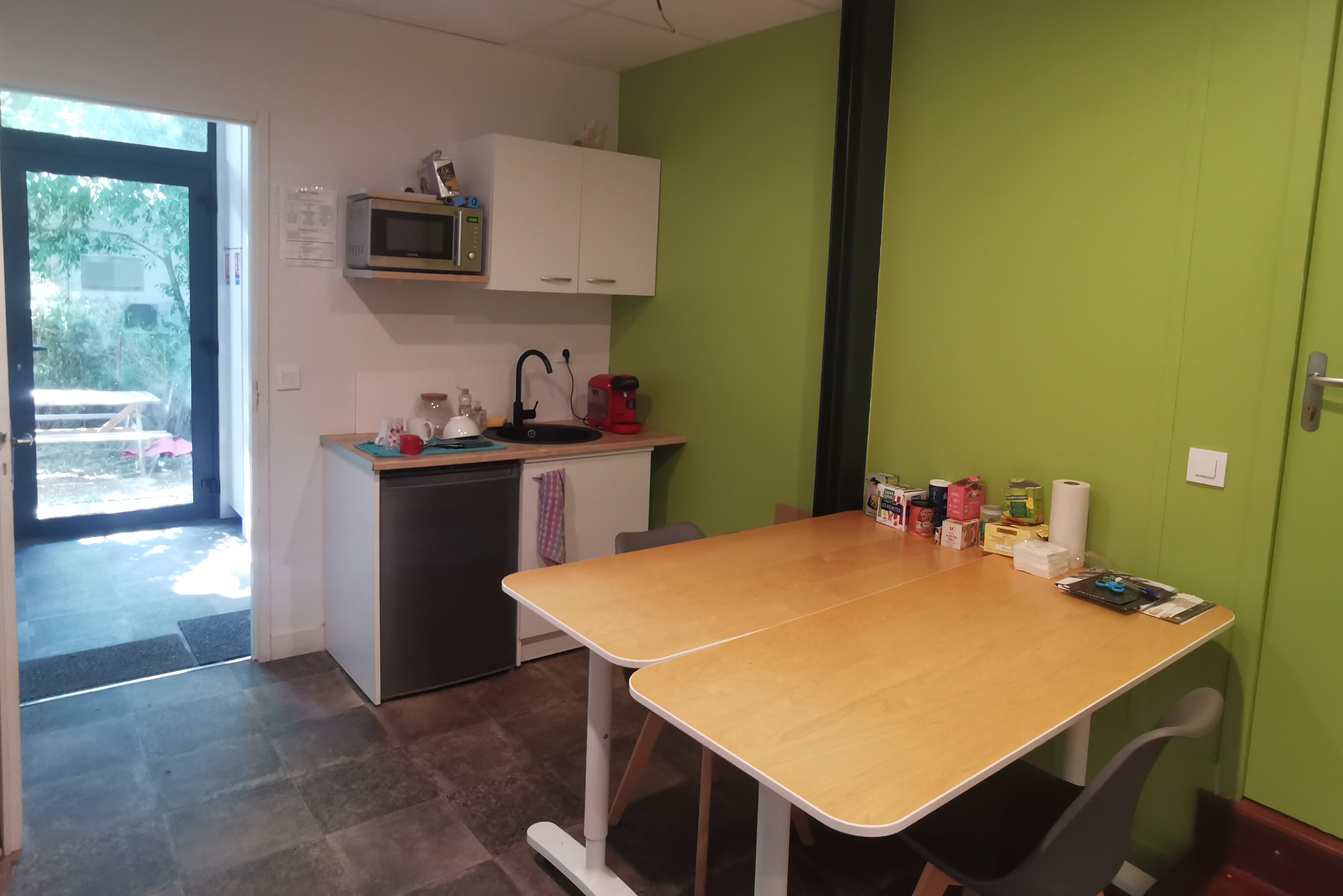 Accès aux espaces communs avec salle de réunion équipée (gratuite sur réservation), cuisine et espace de restauration.